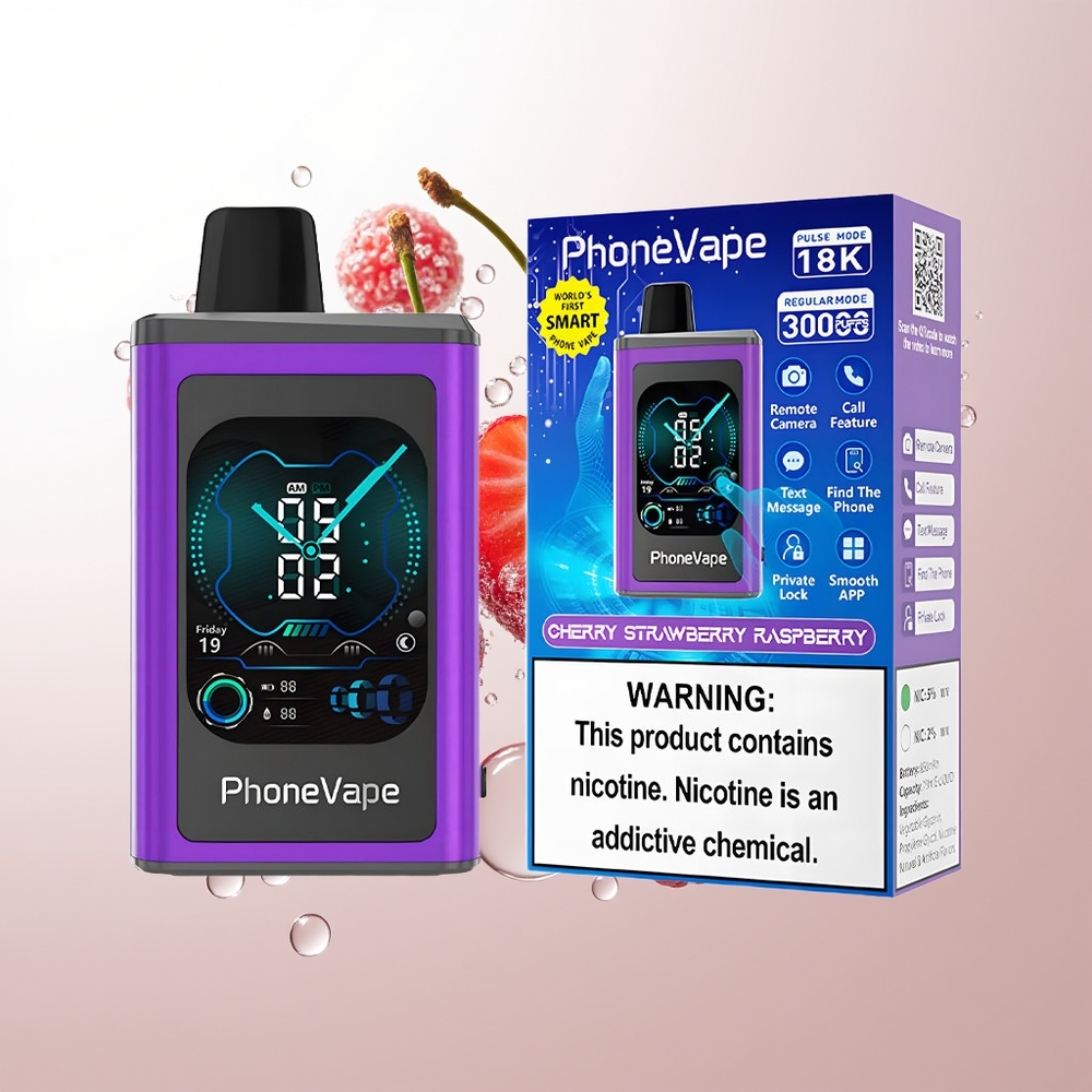 JNR PhoneVape 30000 puffs Adjustable Airflow Full Display Screen Cherry Strawberry Raspberry Wholesale Australia